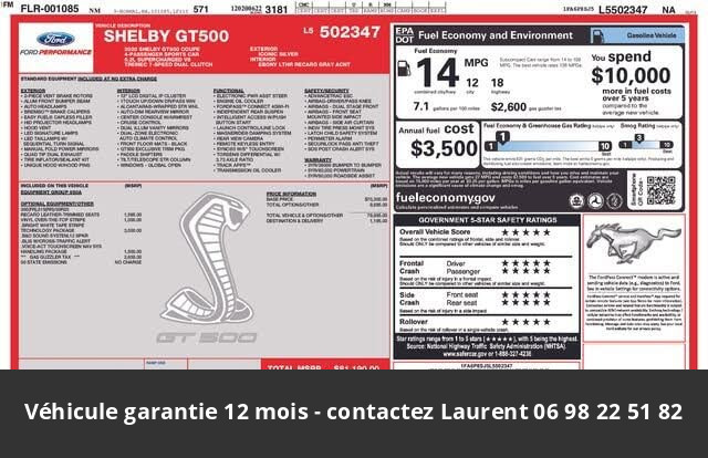 2020 Ford Mustang Shelby GT500 760 Hors homologation 4500e